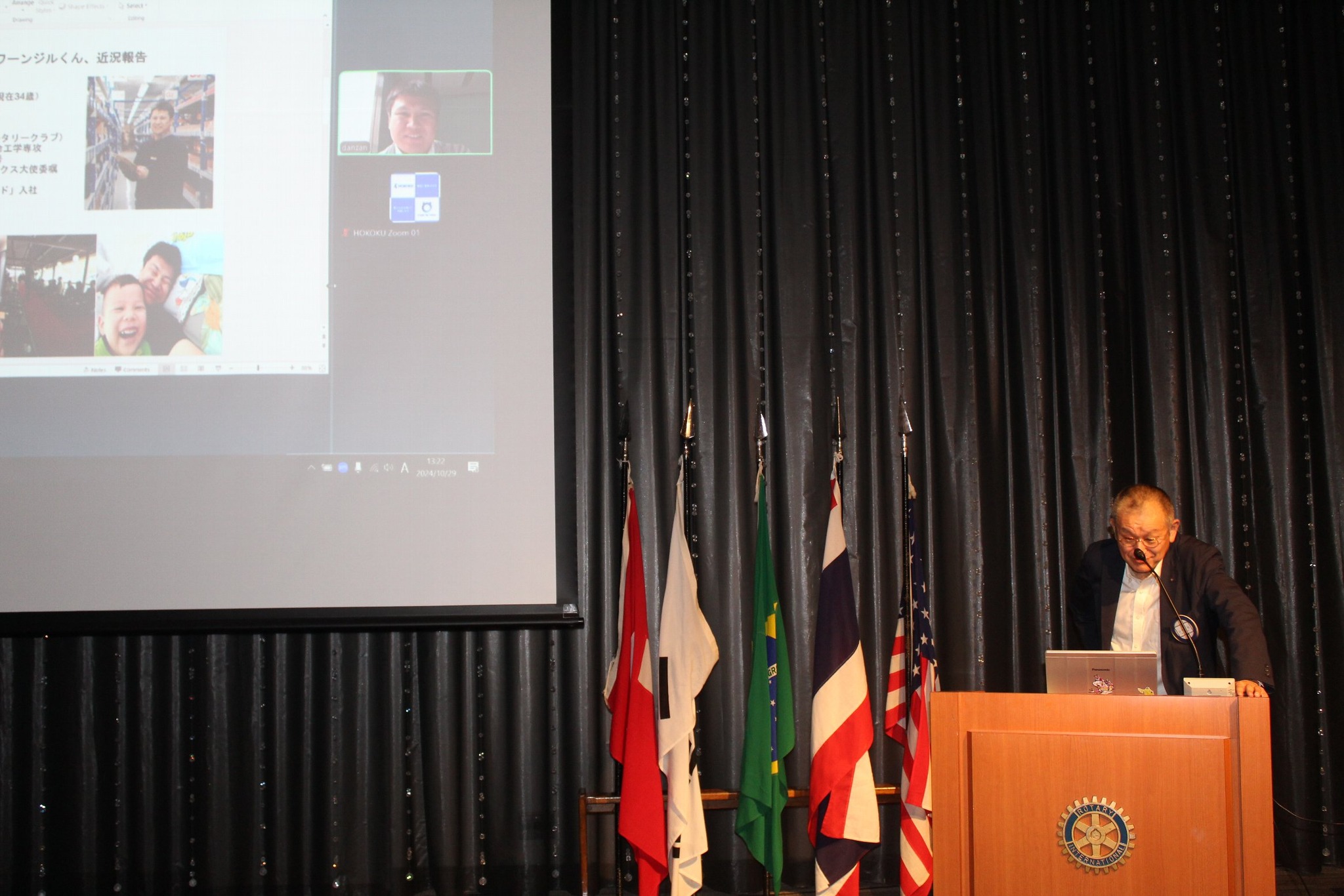 現在もモンゴル米山学友会に所属し、ロータリーの奉仕を続けていただいている話を伺い、これが米山奨学事業の真髄だと感じた例会でした。 来年こそモンゴル訪問を実現したいですね!