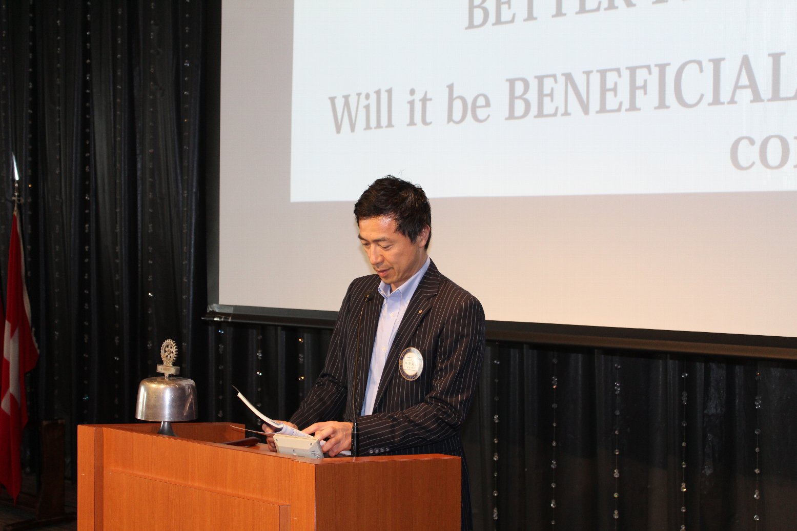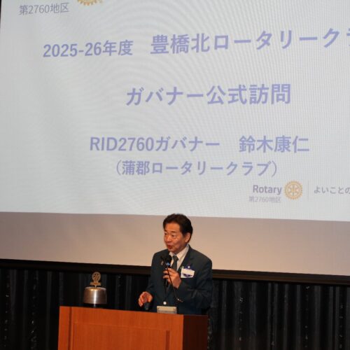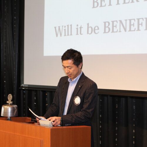 当クラブ髙坂泰弘会長の基本方針「利他という高みに登るために、本気でやるべきことを皆でやりましょう」に触れつつ、魅力あるクラブを目指すことが、会員増強にも繋がること、ポリオ根絶に向けて、RFF事業から新たな啓蒙活動への転換について、地区事業を各クラブへ持ち帰ることで、ともに学び、ともに地域社会に貢献することの意義をお話しいただきました。