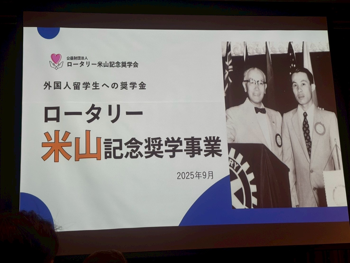 米山奨学事業の成り立ちから今日に至るまでの概要と、世話クラブ・カウンセラー制度について解説を伺い、この事業は米山奨学生の未来を支え、日本と世界との架け橋として活躍するために必要な制度であり、継続した支援が不可欠であるとのお話でした。当クラブも継続して米山奨学生を受け入れており、会員一同改めて「米山記念奨学事業」の必要性を学ぶ機会となりました。