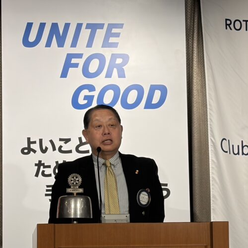 当クラブの定款・細則により、年次総会において次年度理事役員の選任が執り行われ、満場一致の拍手をもって無事承認され、次年度 石川誠会長予定者から、次年度の運営と 創立70周年に向けての決意が示されました。また、創立70周年準備委員会 佐藤元英委員長からも準備状況における説明がありました。