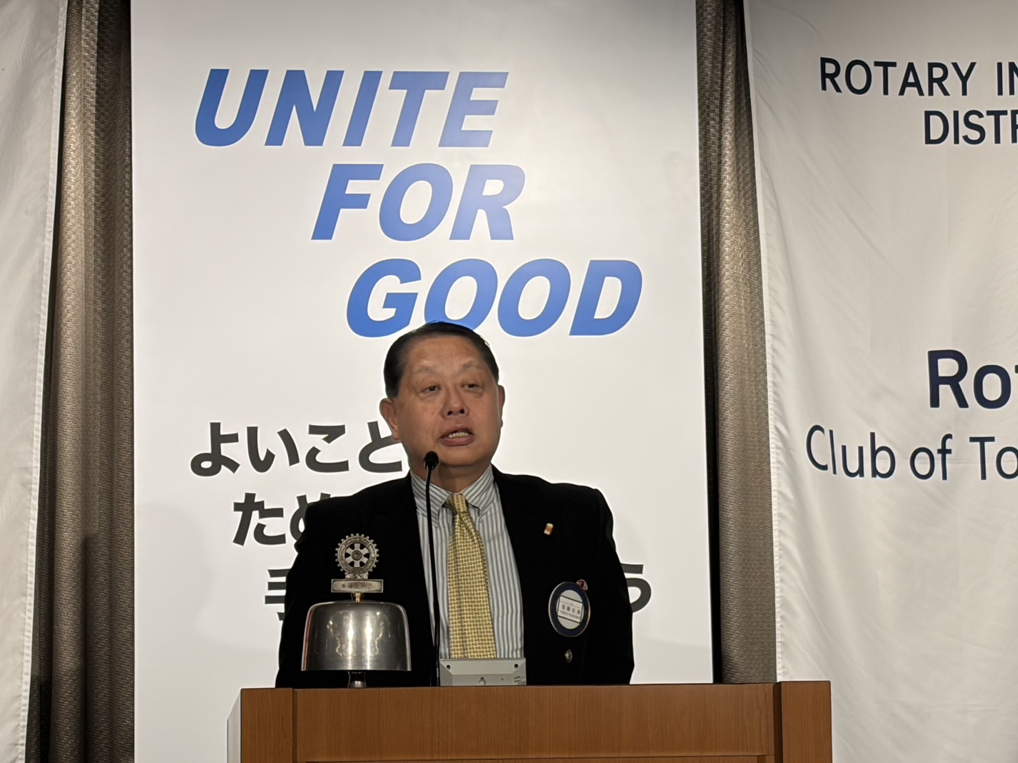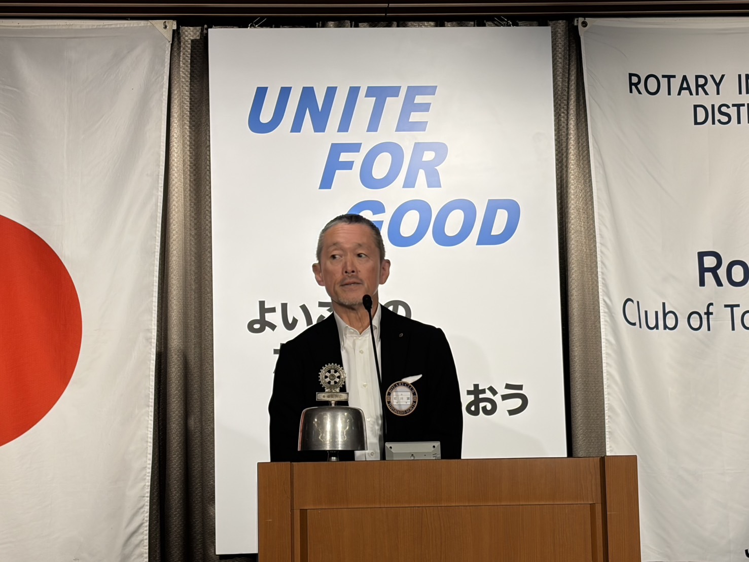 当クラブの定款・細則により、年次総会において次年度理事役員の選任が執り行われ、満場一致の拍手をもって無事承認され、次年度 石川誠会長予定者から、次年度の運営と 創立70周年に向けての決意が示されました。また、創立70周年準備委員会 佐藤元英委員長からも準備状況における説明がありました。