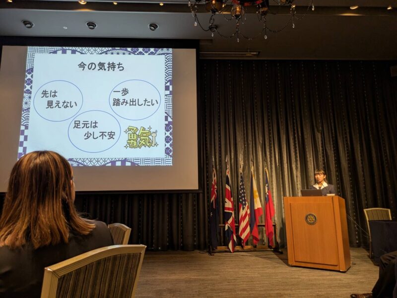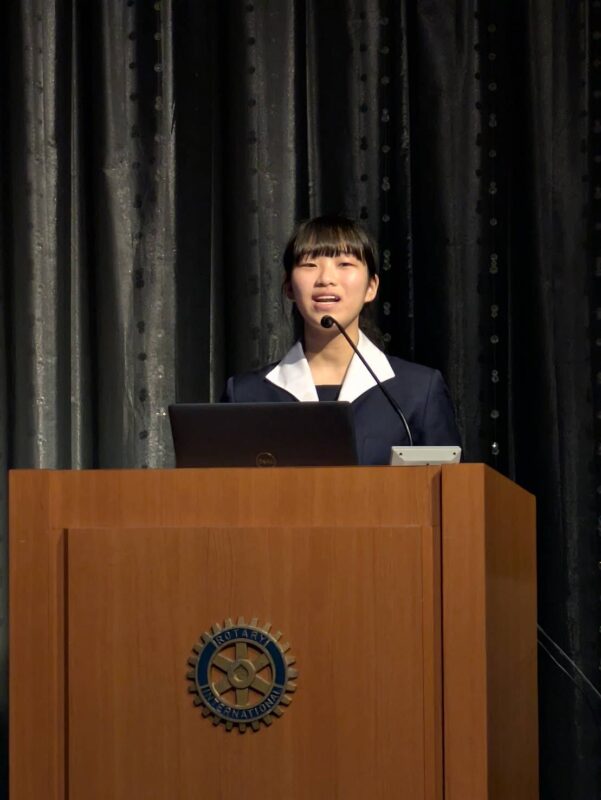 続いて、2026・2027年度の交換留学生としてフィンランドへ派遣される橋本美空さん(当クラブ会員ご子息・高校1年生)を卓話者としてお招きし、派遣に向けた熱い想いを語っていただきました 。