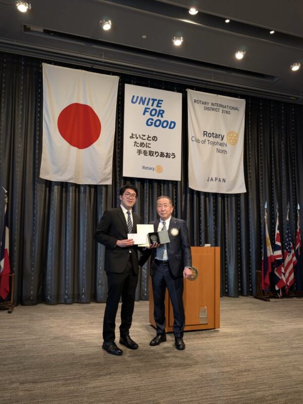 この春から神戸の企業へ就職するフェレイラ君は、最後の挨拶で驚きの(?)抱負を語ってくれました。「豊橋北ロータリークラブの皆様のために、二日酔いにならない食品を開発したい」というユーモア溢れる一言に、会場は爆笑と温かい拍手に包まれました